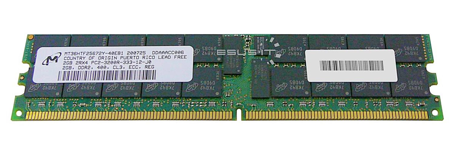 - RAM-geheugenkit 2 GB bestaat uit 1x 2GB PC2-3200 DDR2 400MHz 1.8 V ECC REGISTERED | MT36HTF25672Y-40EB1