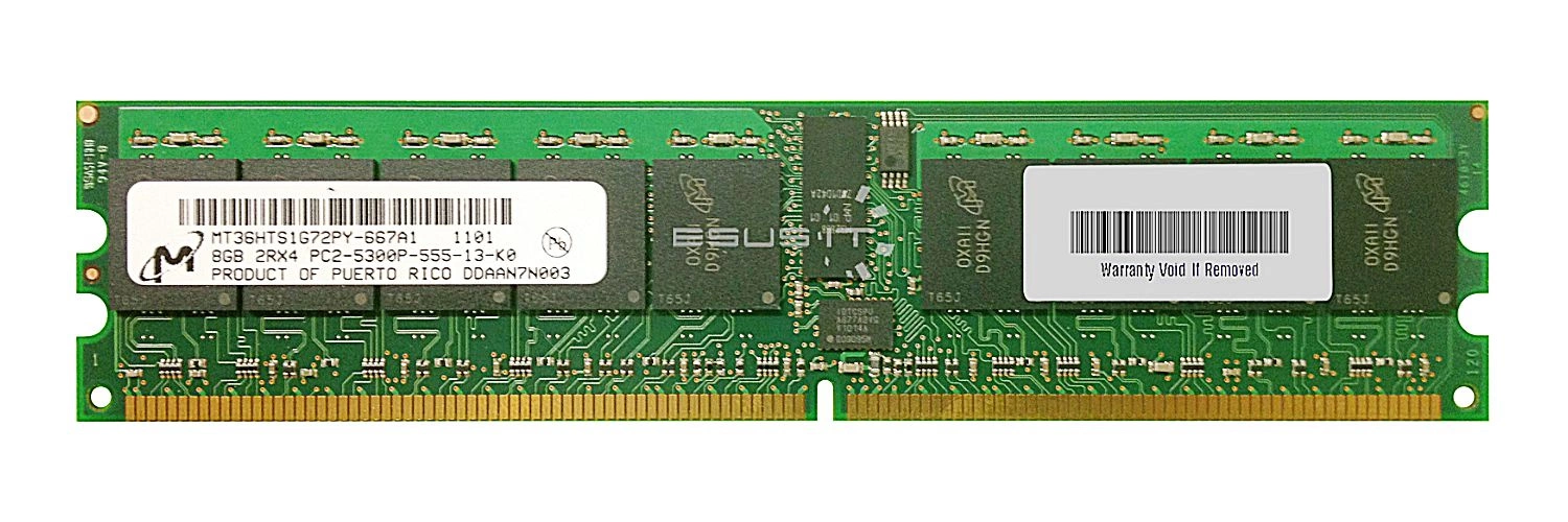 - RAM-geheugenkit 8 GB bestaat uit 1x 8GB PC2-5300 DDR2 667MHz 1.8 V ECC REGISTERED | MT36HTS1G72PY-667A1