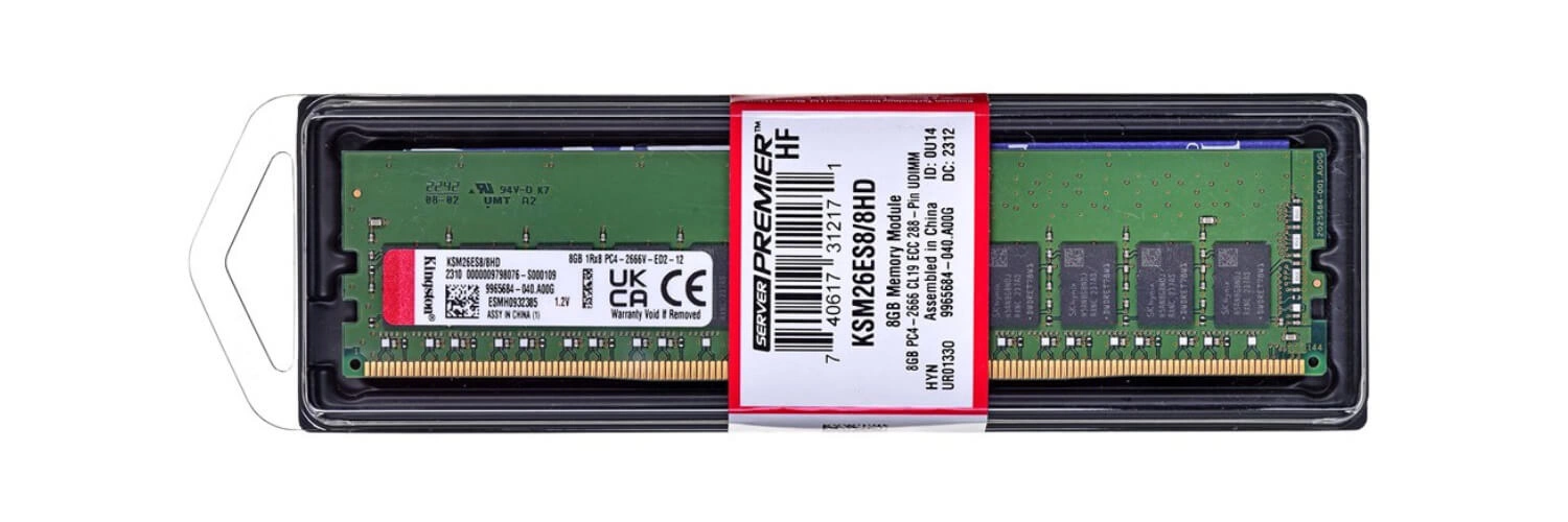 • RAM-geheugenkit RAM 8 GB bestaat uit 1x 8GB 1Rx8 PC4-21300 DDR4 2666MHz 1.2 ECC UNBUFFERED | KSM26ES8/8HD