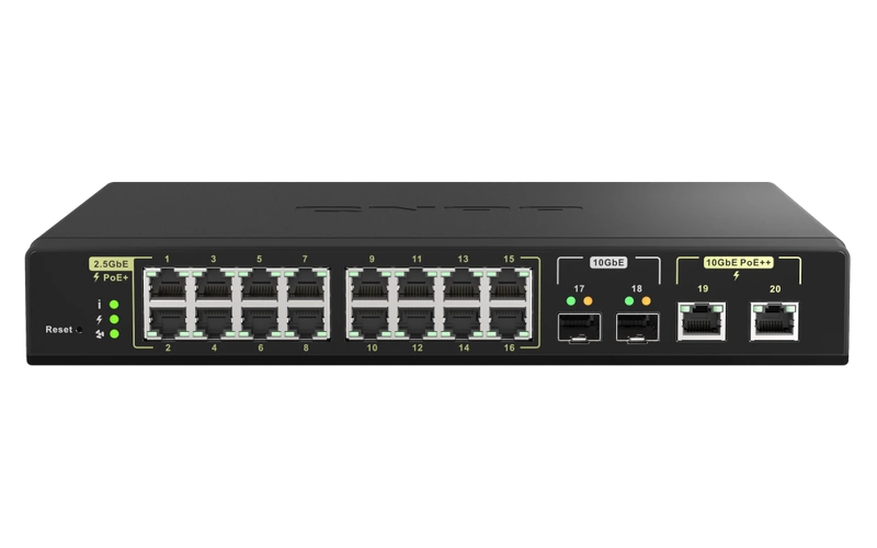 Schakelaar QNAP QSW-M2116P-2T2S 16x 2.5Gb | 2x 10Gb 2x SFP+ 280 W PoE+/PoE++