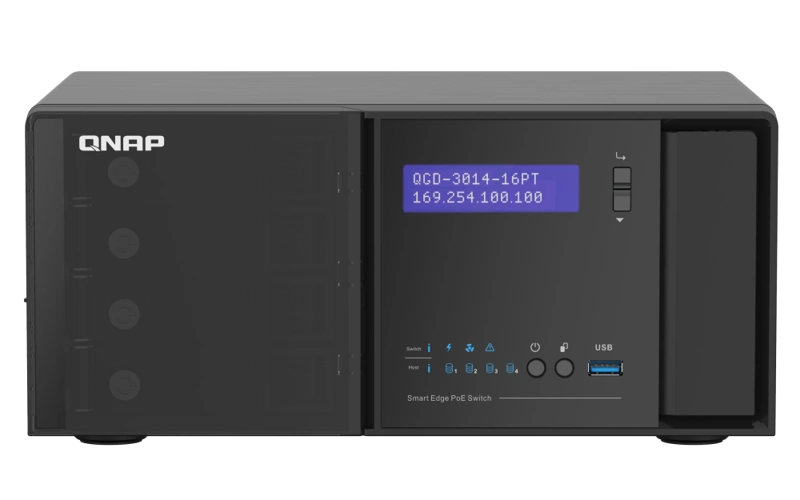 Schakelaar QNAP QGD-3014-16PT-8G 14x 1Gb 2x RJ-45/SFP+ 140 W PoE+