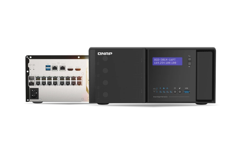 • Schakelaar (Switch) QNAP QGD-3014-16PT 14x 1Gb 2x RJ-45/SFP+ beheersbaar | QGD-3014-16PT-8G
