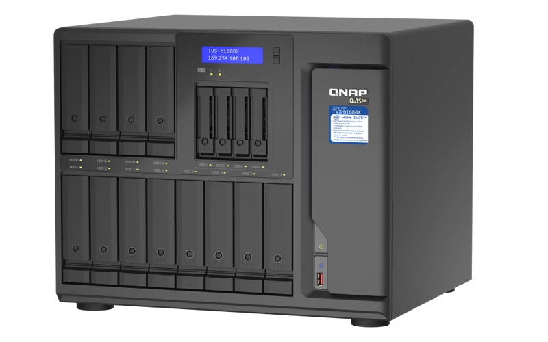 • NAS-server QNAP TVS-h1688X | CPU: Intel Xeon W-1250 RAM: 32GB | 4x 2.5GB RJ-45 2x 10GB RJ-45, 6x USB 3.2 Gen 2 | Garantie 3 jaar
