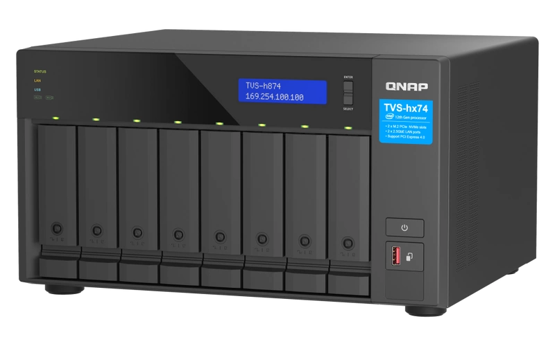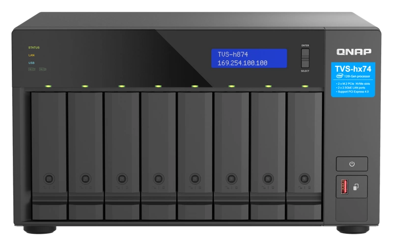 - NAS-server QNAP TVS-h874 | CPU: Intel Core i5-12400 RAM: 32GB | 2x 2.5GB RJ-45, 3x USB 3.2 Gen 2 | Garantie 3 jaar