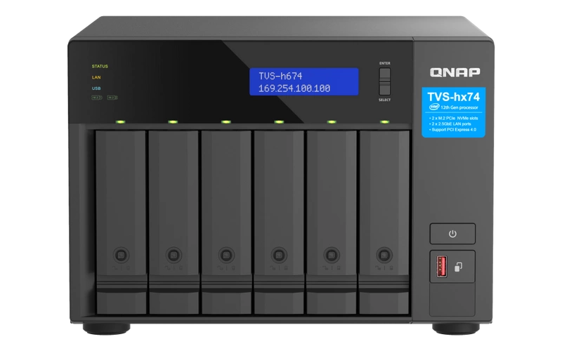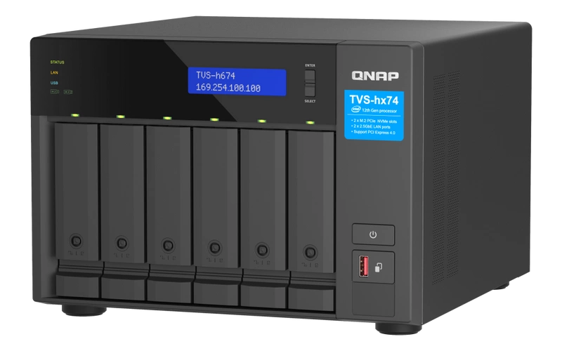 - NAS-server QNAP TVS-h674 | CPU: Intel Core i5-12400 RAM: 32GB | 2x 2.5GB RJ-45, 3x USB 3.2 Gen 2 | Garantie 3 jaar