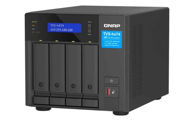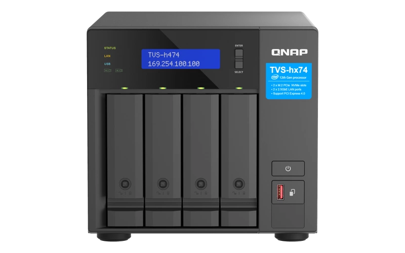 - NAS-server QNAP TVS-h474-PT | CPU: Intel Pentium Gold G7400 RAM: 8GB | 2x 2.5GB RJ-45, 2x USB 3.2 Gen 2 | Garantie 3 jaar