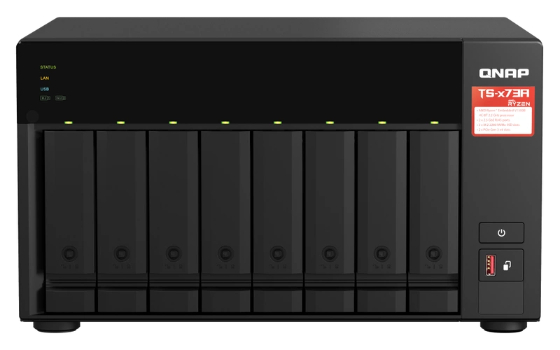 • NAS-server QNAP TS-873A | CPU: AMD Ryzen V1500B RAM: 8GB | 2x 2.5GB RJ-45, 4x USB 3.2 Gen 2 | Garantie 3 jaar