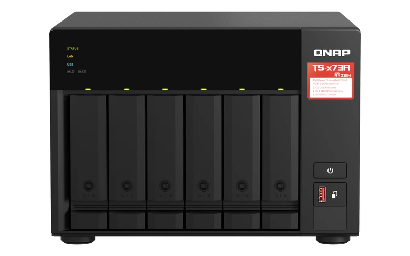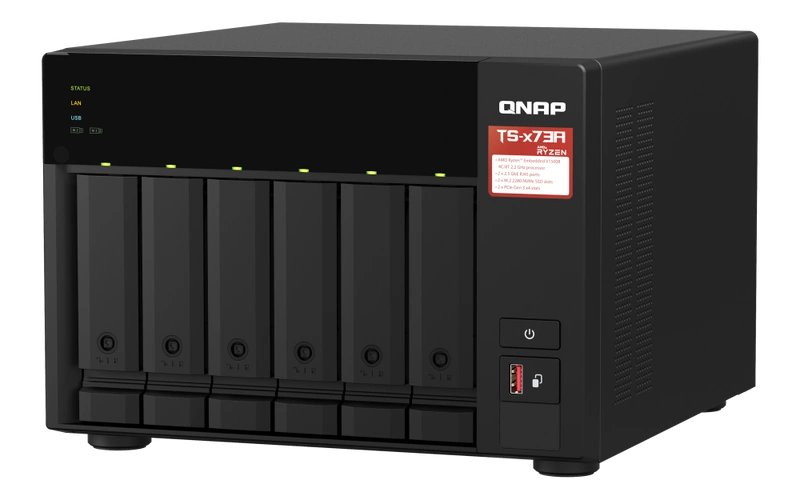 • NAS-server QNAP TS-673A | CPU: AMD Ryzen V1500B RAM: 8GB | 2x 2.5GB RJ-45, 4x USB 3.2 Gen 2 | Garantie 3 jaar