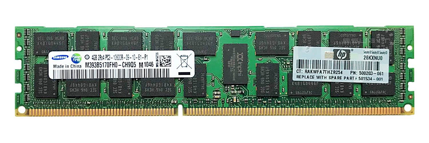 - RAM-geheugenkit 4 GB bestaat uit 1x 4GB PC3-10600 DDR3 1333MHz 1.5 V ECC REGISTERED | M393B5170FH0-CH9