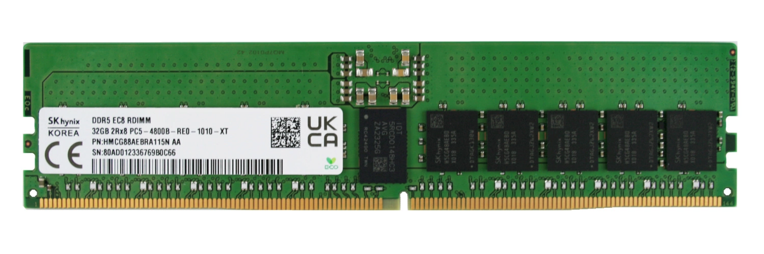 - Set of 32GB memory consisting of 1x 32 GB 2Rx8 PC5-38400 DDR5 4800MHz 1.1 V ECC REGISTERED | HMCG88AEBRA115N