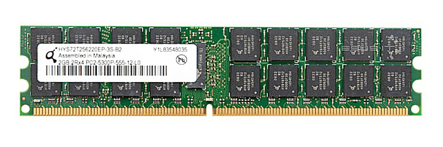 - RAM-geheugenkit 2 GB bestaat uit 1x 2GB PC2-5300 DDR2 667MHz 1.8 V ECC REGISTERED | HYS72T256920EP-3S-B2