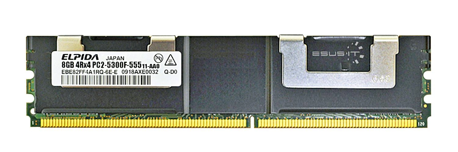- RAM-geheugenkit 8 GB bestaat uit 1x 8GB PC2-5300 DDR2 667MHz 1.8 V ECC FULLY BUFFERED DIMM | EBE82FF4A1RQ-6E-E