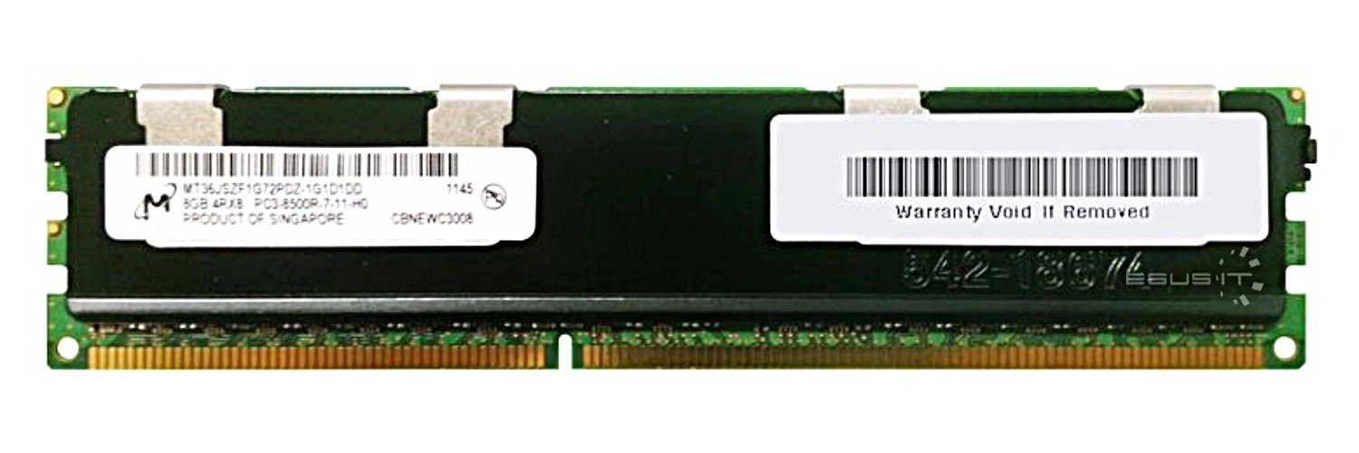 - RAM-geheugenkit 8 GB bestaat uit 1x 8GB PC3-8500 DDR3 1066MHz 1.5 V ECC REGISTERED | MT36JSZF1G72PDZ-1G1