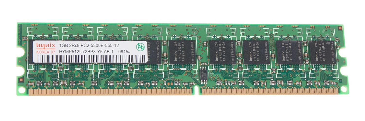 - RAM-geheugenkit 1GB bestaat uit 1x 1GB PC2-5300 DDR2 667MHz 1.8 V ECC UNBUFFERED | HYMP512U72BP8-Y5