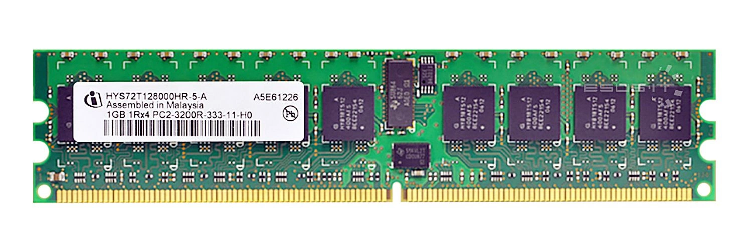 - RAM-geheugenkit 1 GB bestaat uit 1x 1GB PC2-3200 DDR2 400MHz 1.8 V ECC REGISTERED | HYS72T128000HR-5-A